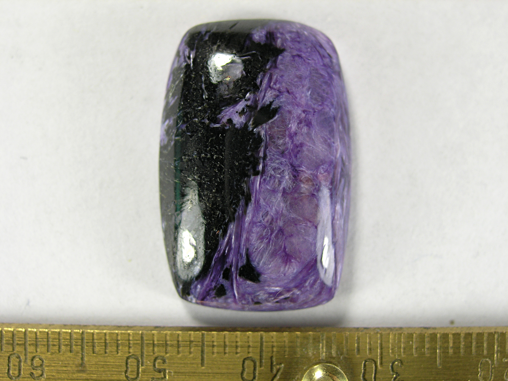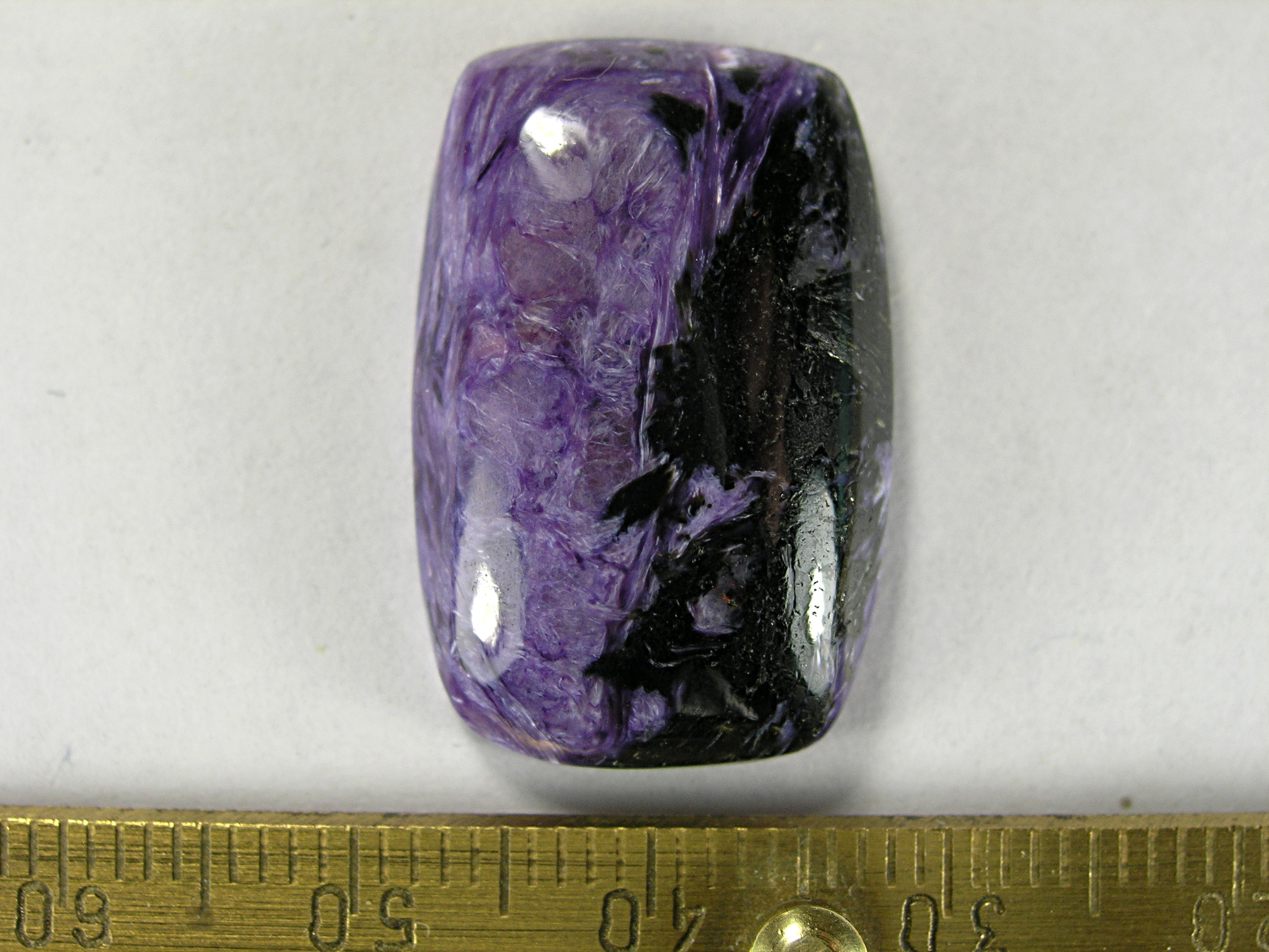 Чароит, ограненный кабошоном. Размер 25x17x6 мм (длина, ширина, толщина).