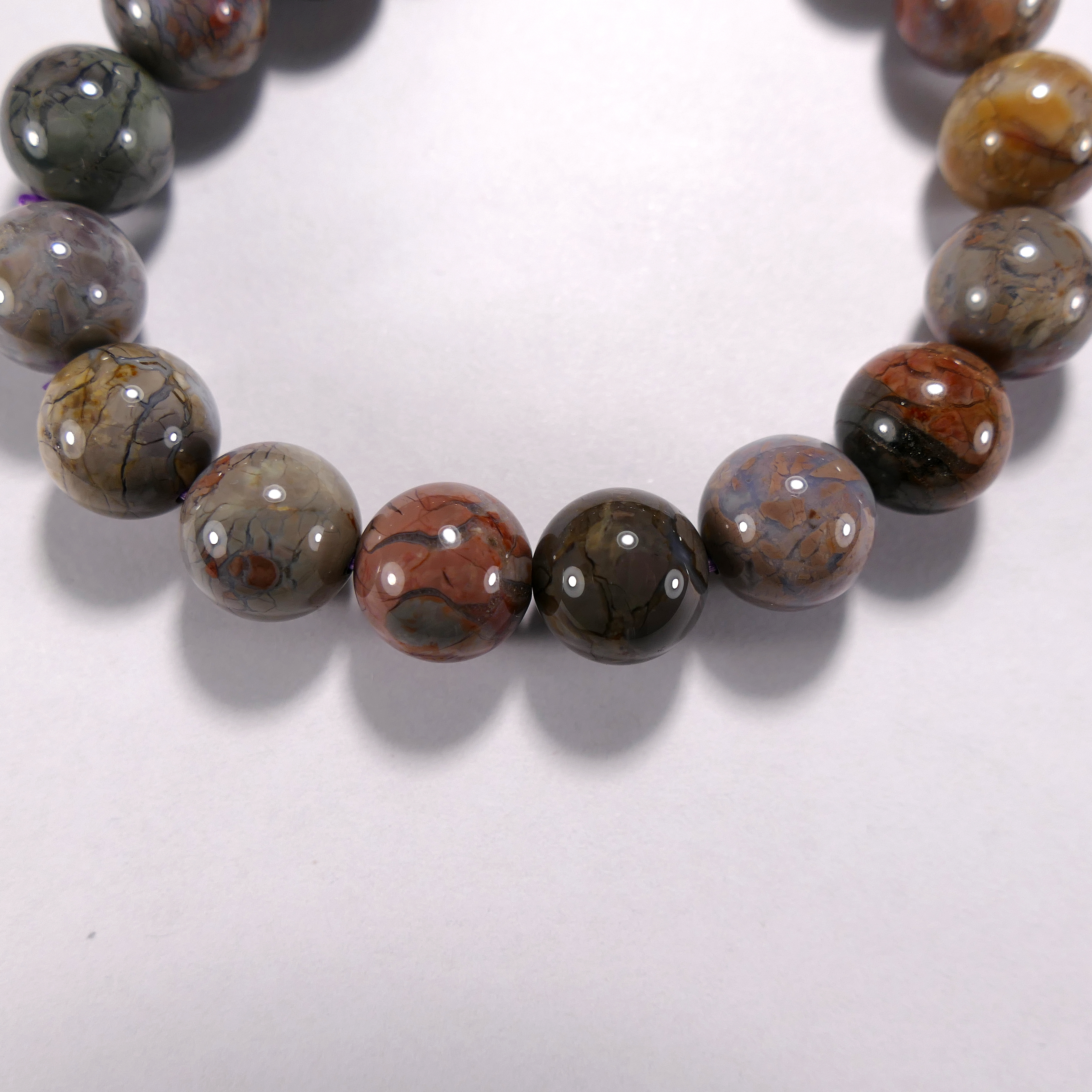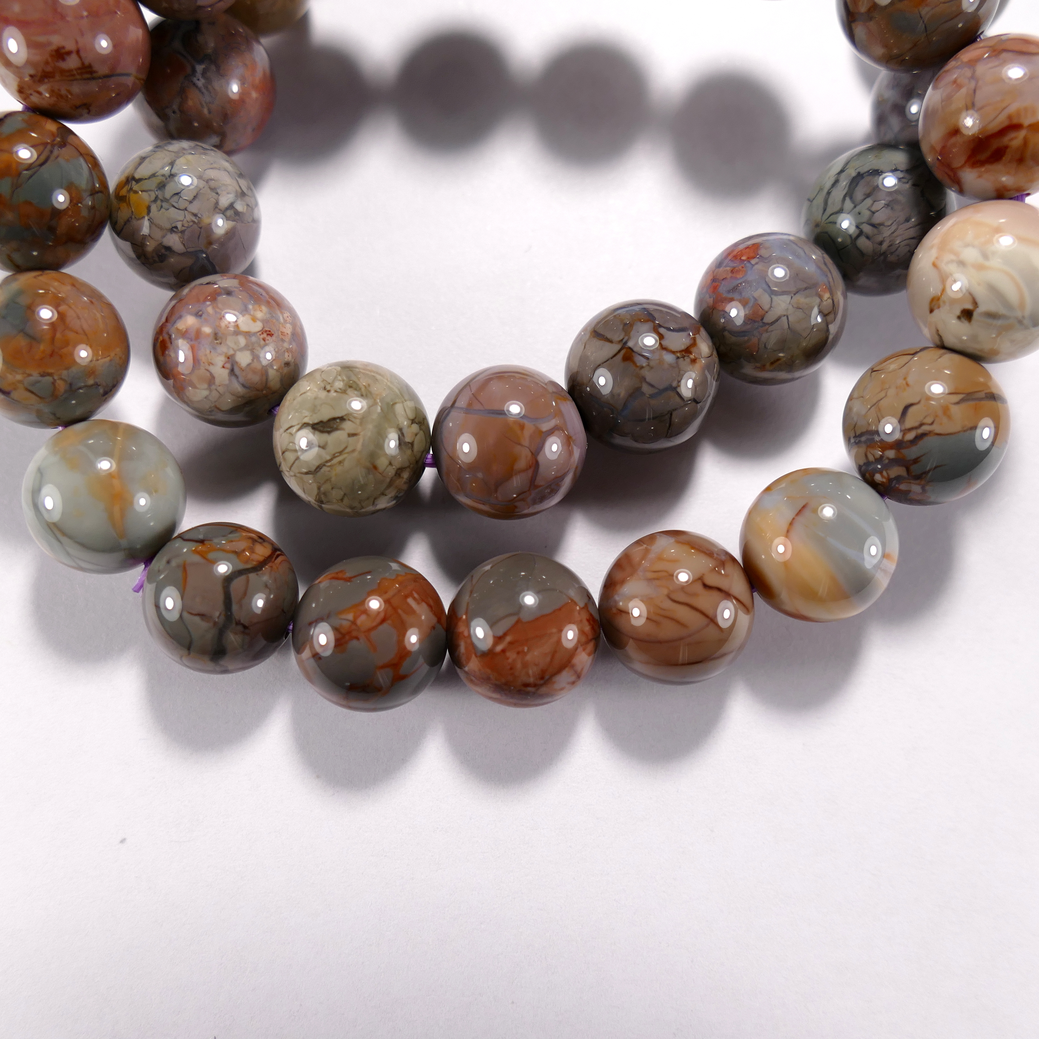 Бусина из натурального агата Алашанского рисунчатого, с прожилками кварца. Огранка - шар гладкий. Размер 12 мм. Цена указана за 1 бусину. Происхождение камня - Алашань, Внутренняя Монголия, Китай.