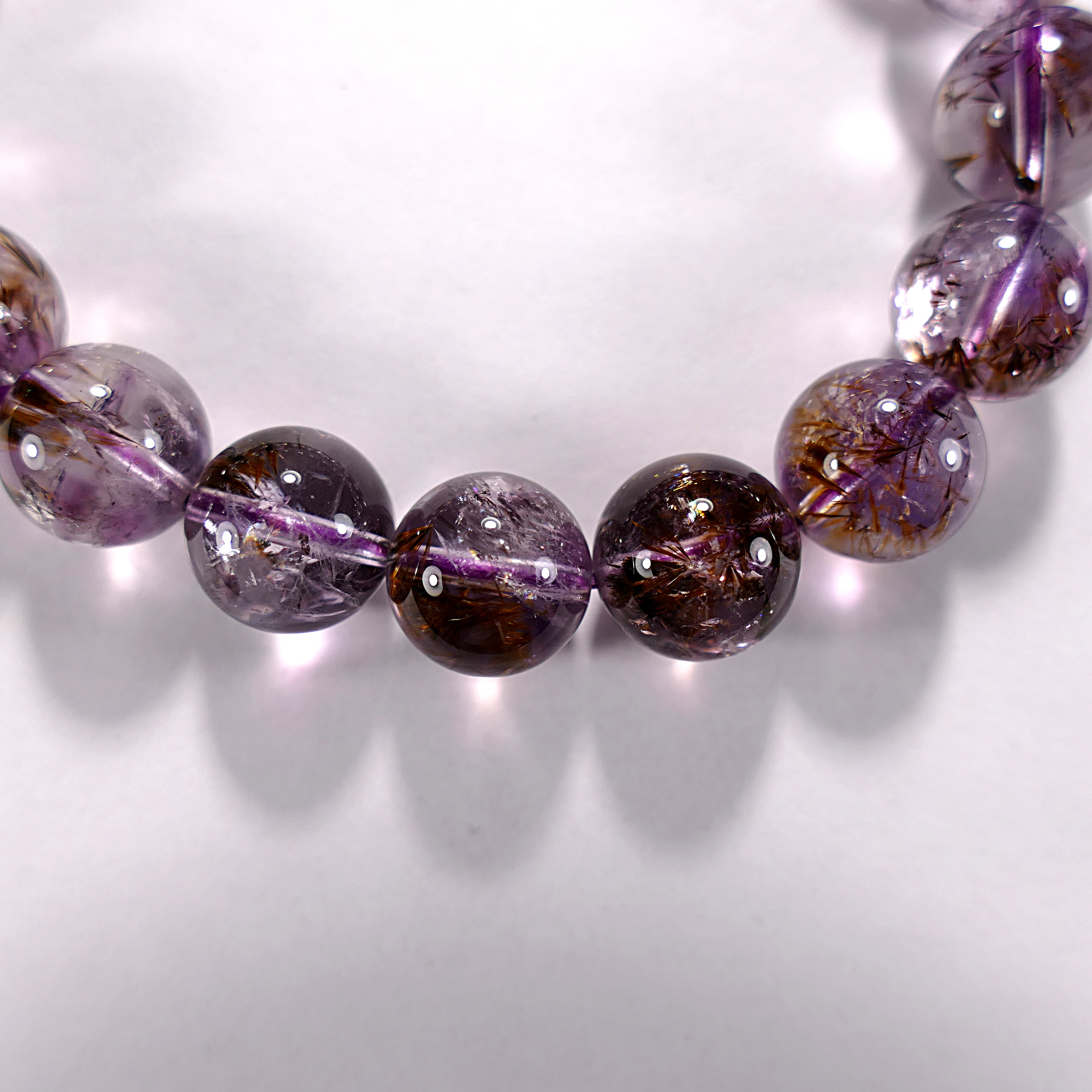 Бусина из натурального аметиста с гётитом. Огранка - шар гладкий. Размер 11 мм. Класс минерала - АА. Цена указана за 1 бусину. Происхождение камня - Бразилия.