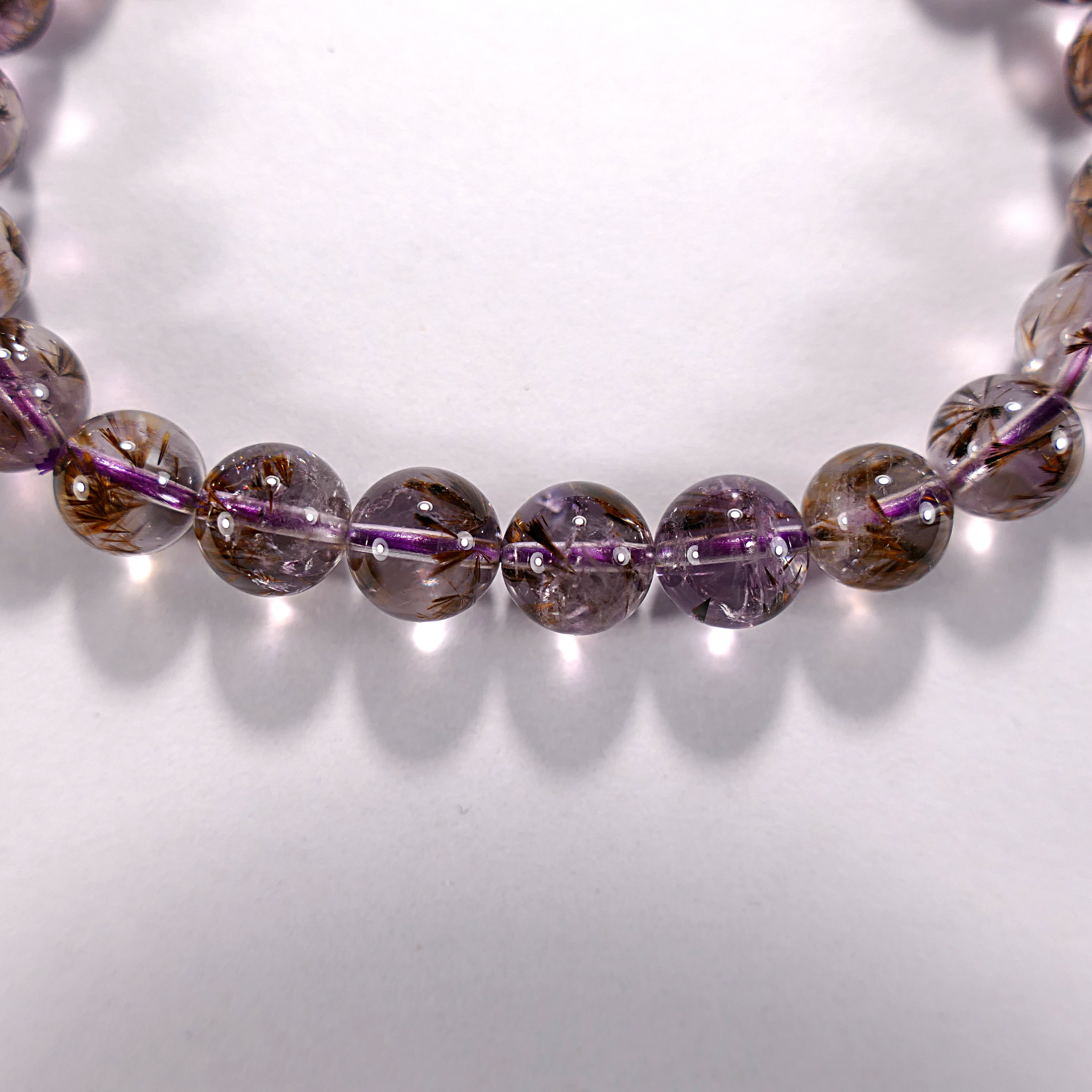 Бусина из натурального аметиста с гётитом. Огранка - шар гладкий. Размер 8 мм. Класс минерала - АА. Цена указана за 1 бусину. Происхождение камня - Бразилия.