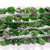 Бусина из натурального хромдиопсида. Без огранки. Размер 6x8 - 8x16 мм. Указаны размеры от минимального к максимальному, каждая бусина имеет индивидуальную форму и размер. Цена указана за 1 бусину. Происхождение камня - Россия.