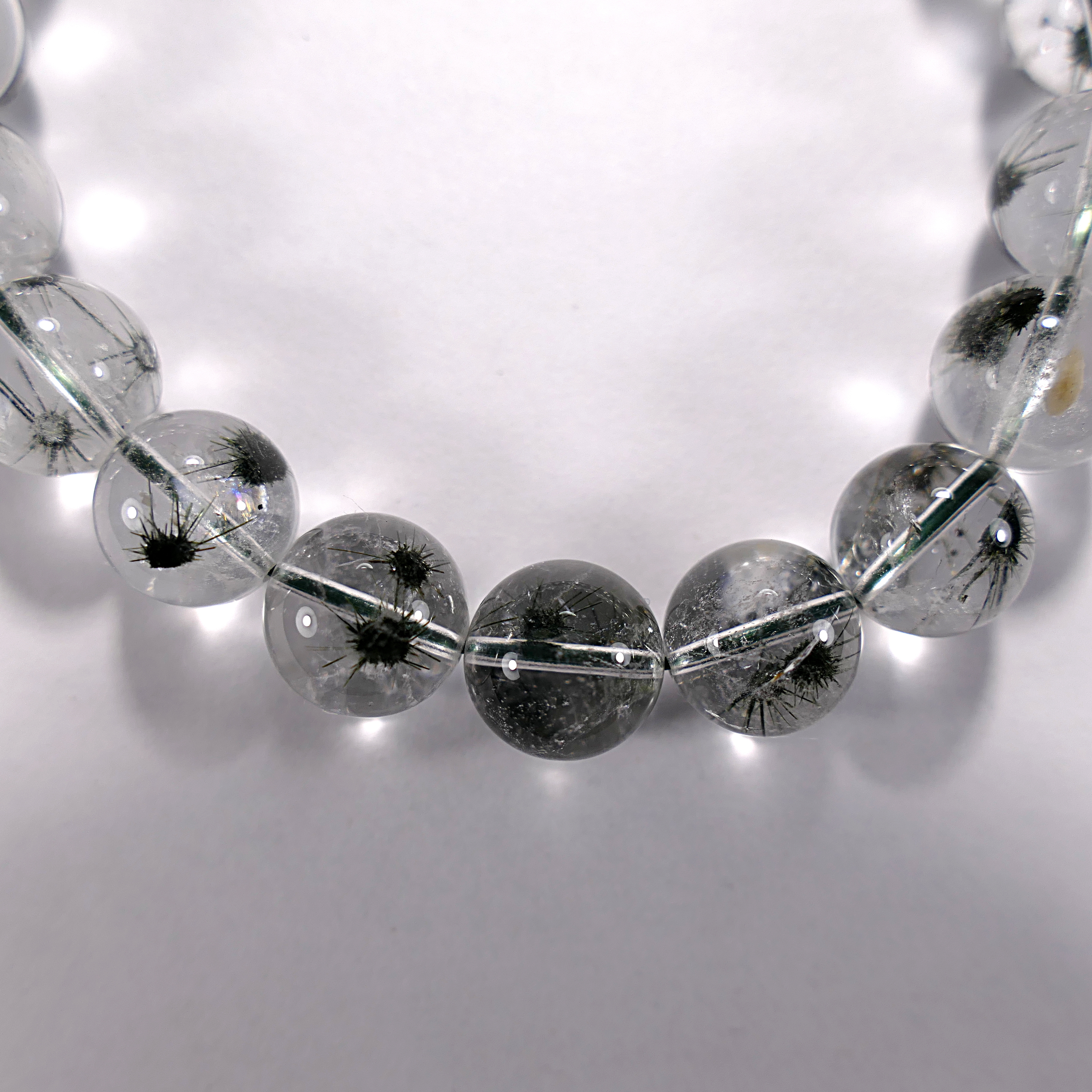 Бусина из натурального кварца с голландитом (Урчинского кварца). Огранка - шар гладкий. Размер 10 мм. Класс минерала - ААА. Цена указана за 1 бусину. Происхождение камня - Бразилия.