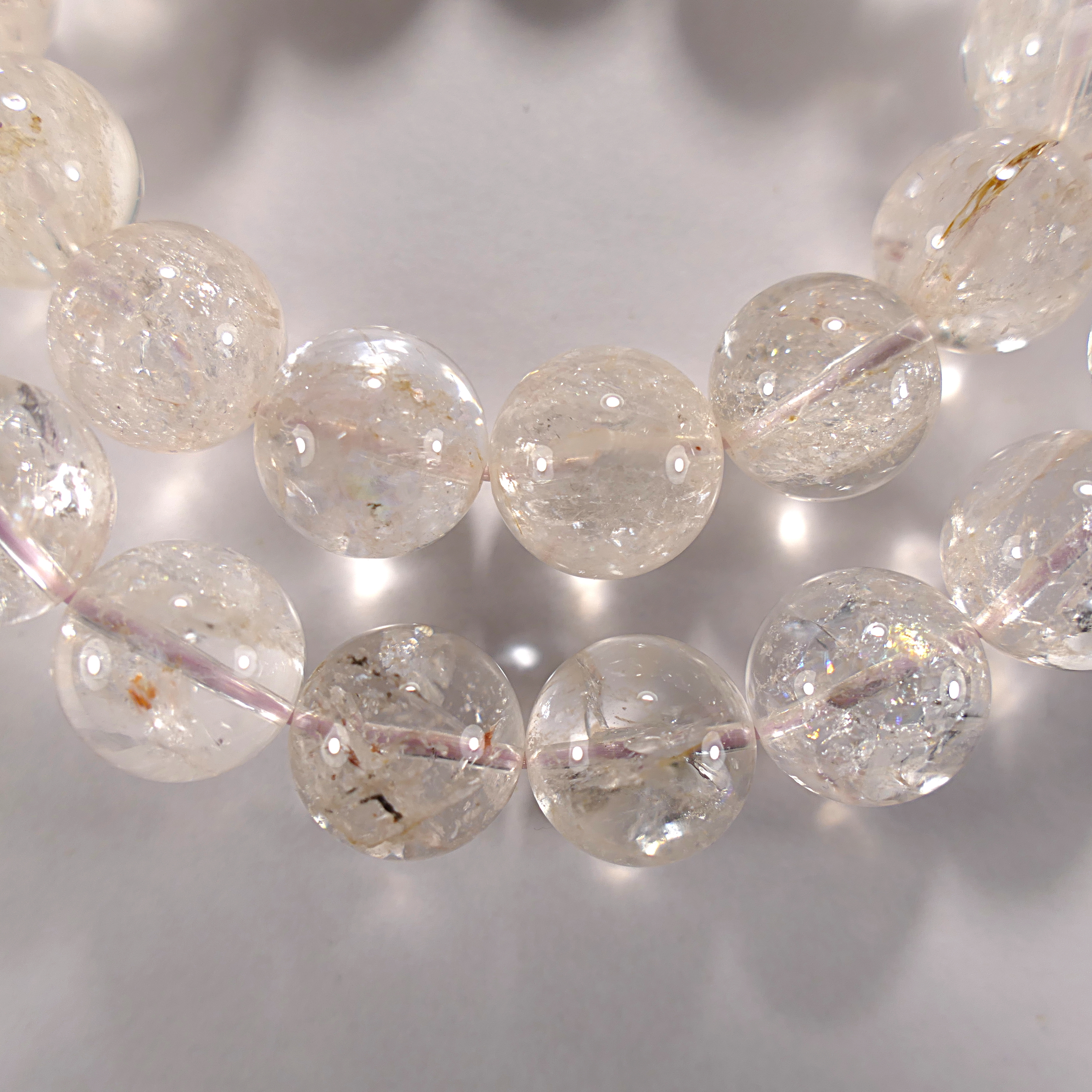 Бусина из натурального горного хрусталя снежного. Огранка - шар гладкий. Размер 12 мм. Цена указана за 1 бусину. Внешний вид кварца обусловлен наличием природных газово-жидкостных включений. Происхождение камня - Бразилия.