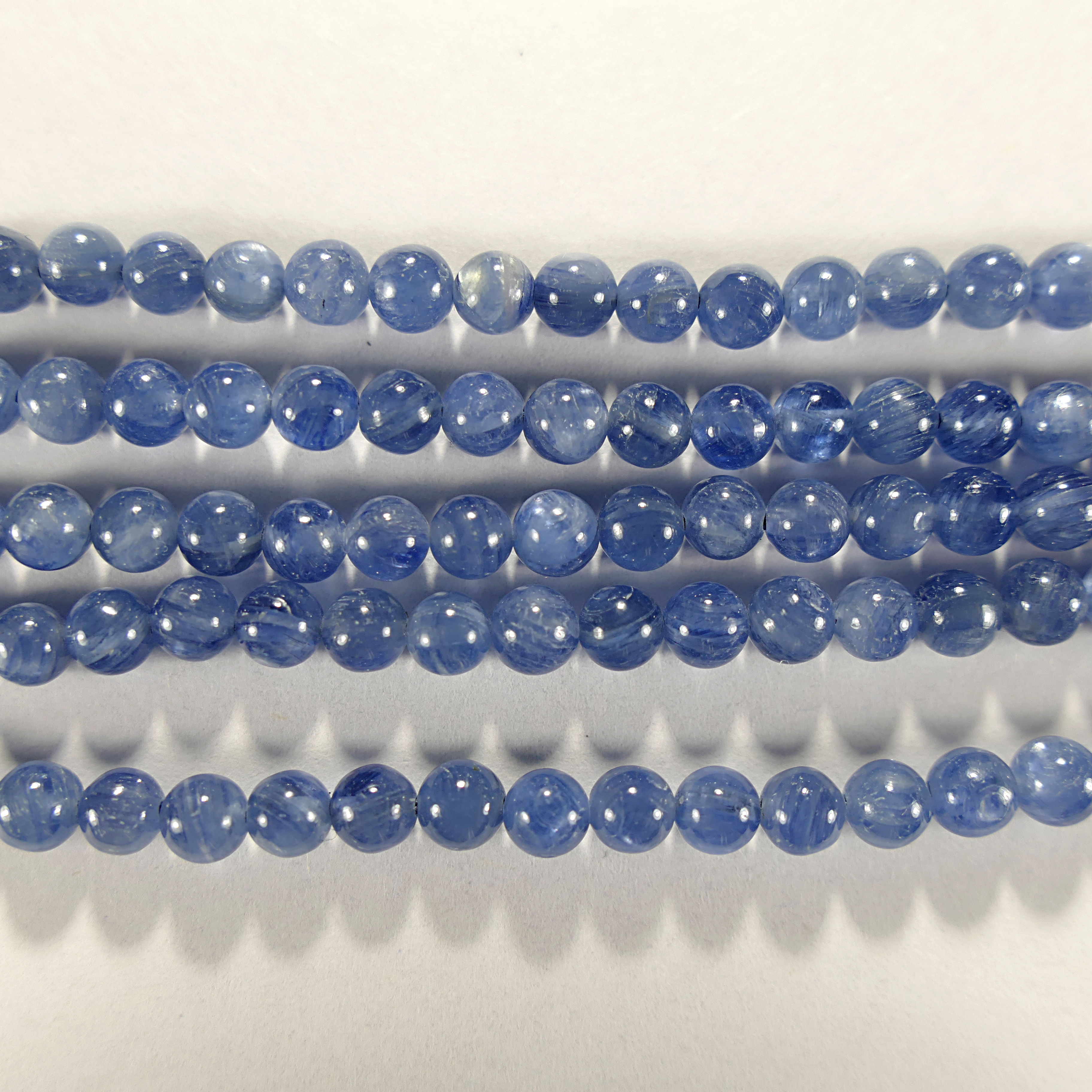 Нить бусин из натурального кианита светлого. Огранка - шар гладкий. Размер 4 мм. Цена указана за 1 нить. Длина нити - 40 см. Примерное количество бусин на нити - 93 штуки. Происхождение камня - Бразилия.