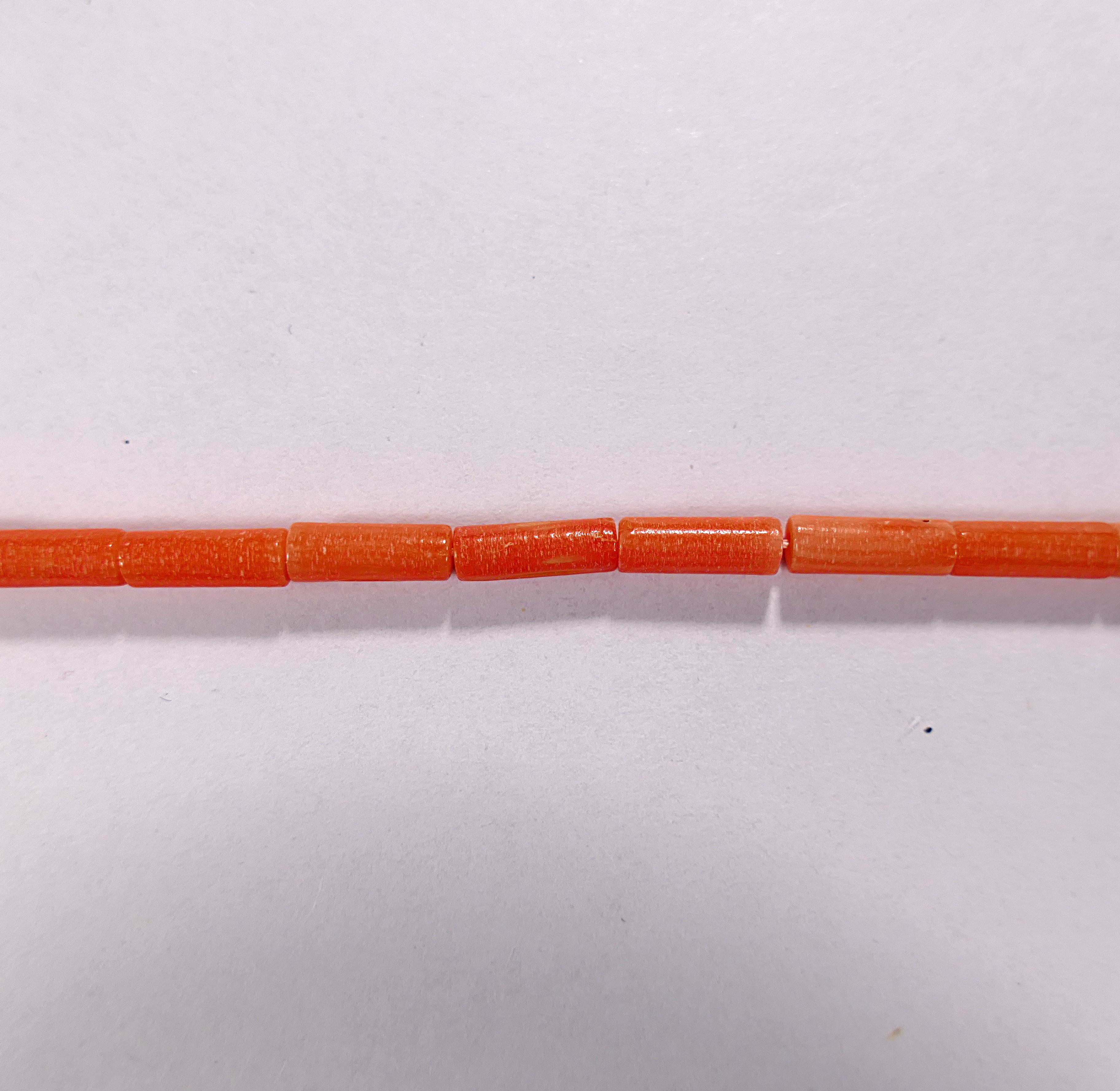 Бусина из натурального коралла оранжевого, облагороженного. Огранка - цилиндр гладкий. Размер 3х9 мм. Цена указана за 1 бусину. Происхождение камня - Японское море.