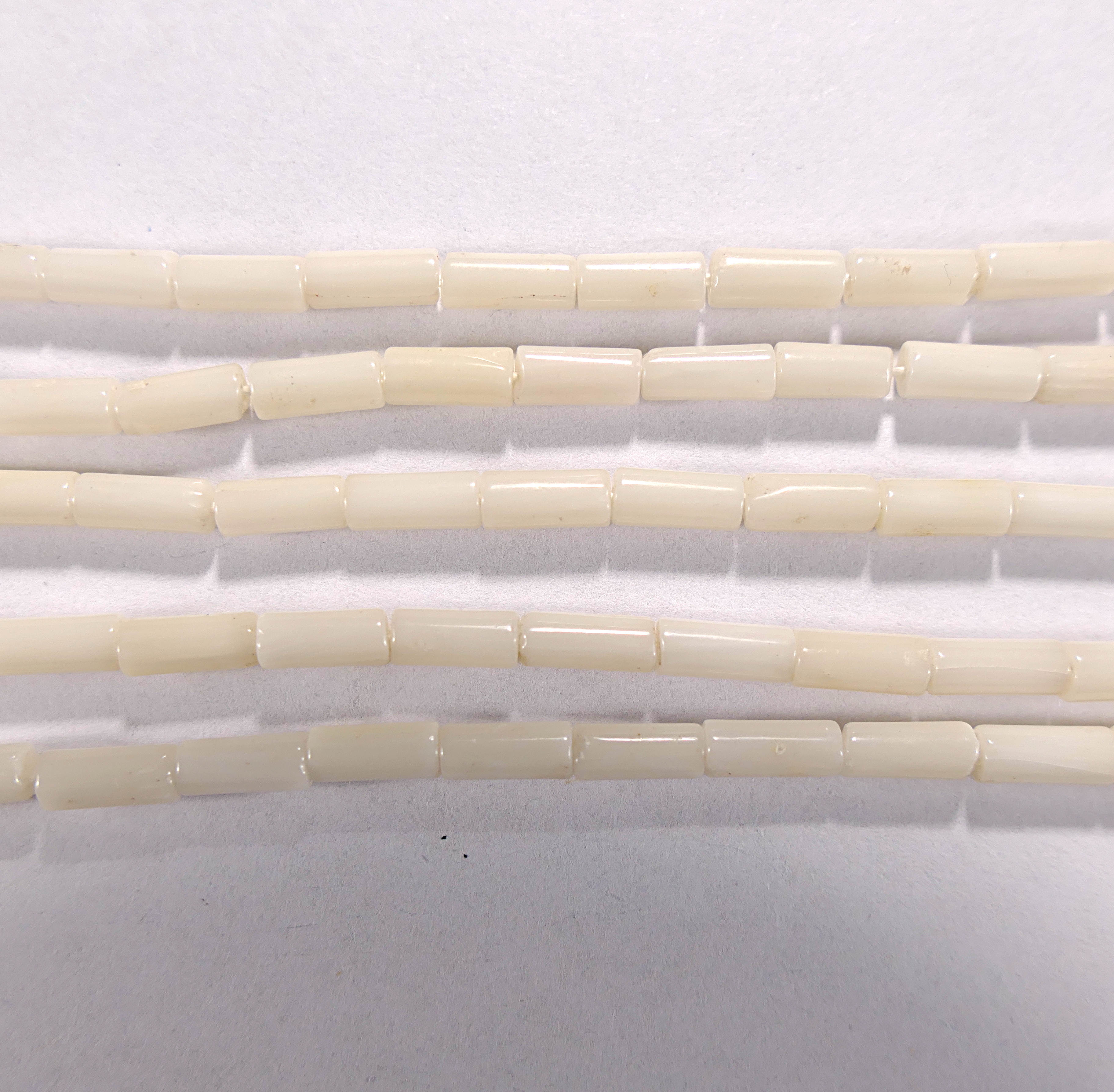 Нить бусин из натурального коралла белого, облагороженного. Огранка - цилиндр гладкий. Размер 3х7 мм. Цена указана за 1 нить. Длина нити - 40 см. Примерное количество бусин на нити - 55 штук. Происхождение камня - Японское море.