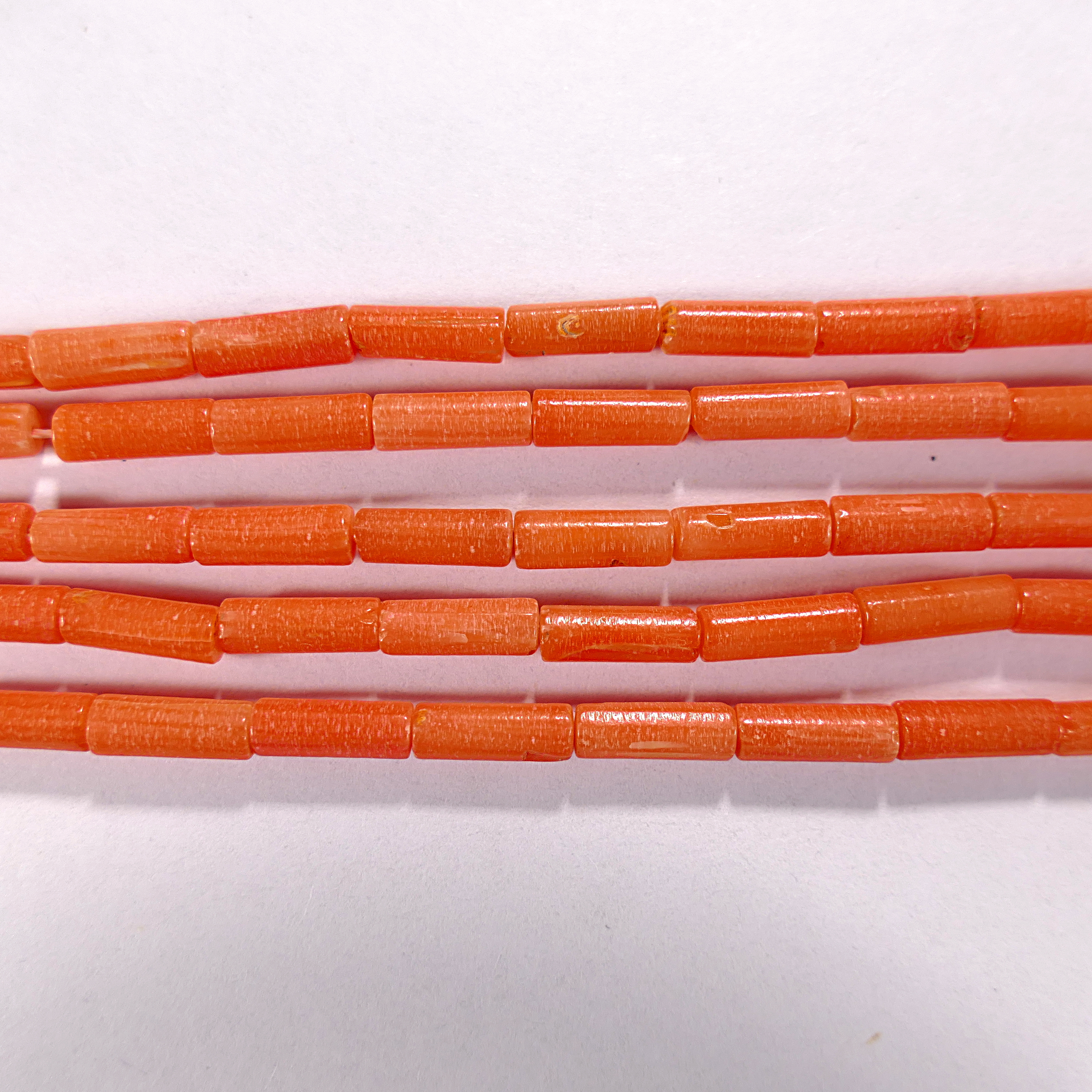 Нить бусин из натурального коралла оранжевого, облагороженного. Огранка - цилиндр гладкий. Размер 3х9 мм. Цена указана за 1 нить. Длина нити - 40 см. Примерное количество бусин на нити - 40 штук. Происхождение камня - Японское море.