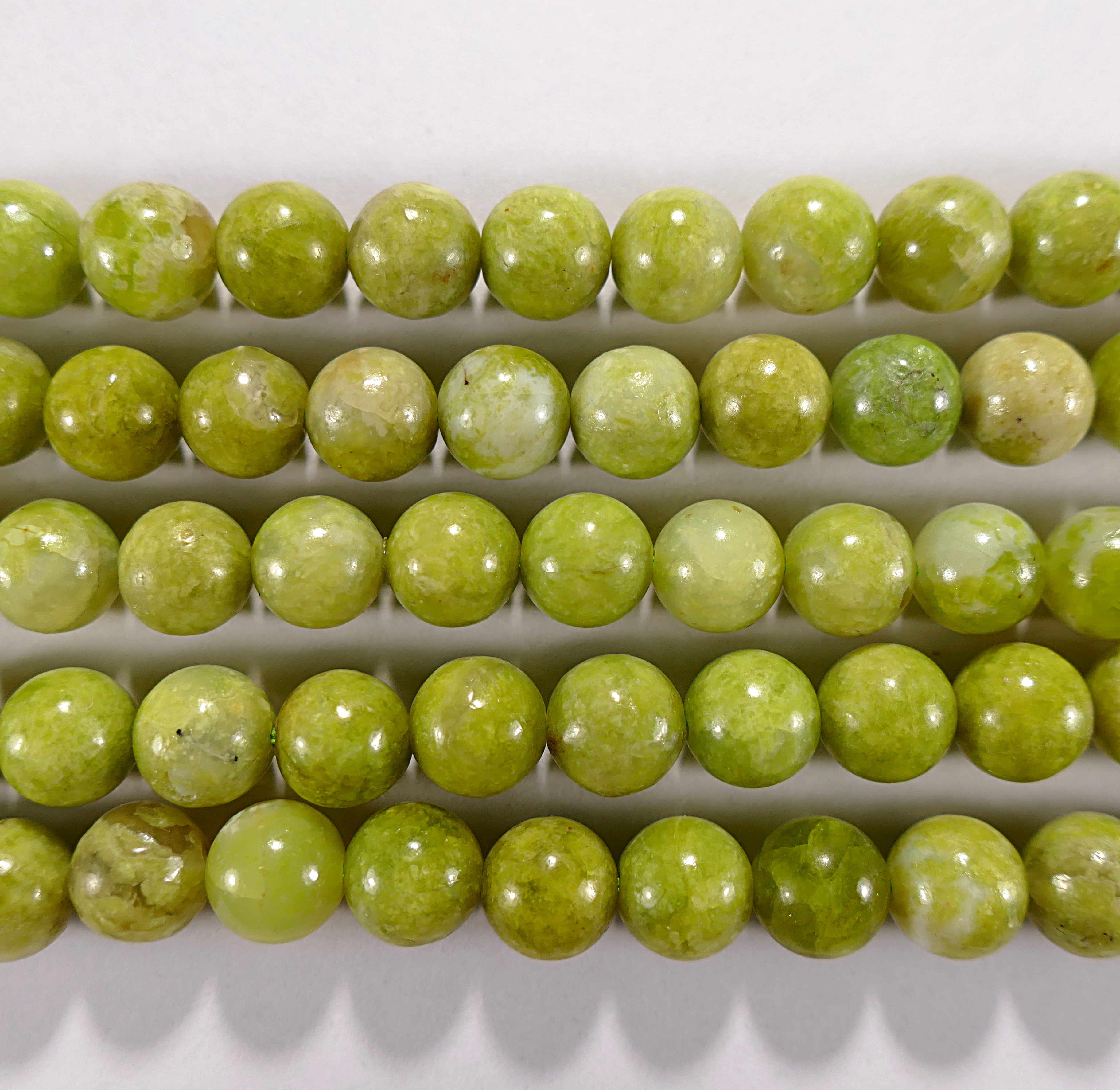 Нить бусин из натурального опала зеленого. Огранка - шар гладкий. Размер 8 мм. Цена указана за 1 нить. Длина нити - 40 см. Примерное количество бусин на нити - 47 штук. Происхождение камня - Австралия.