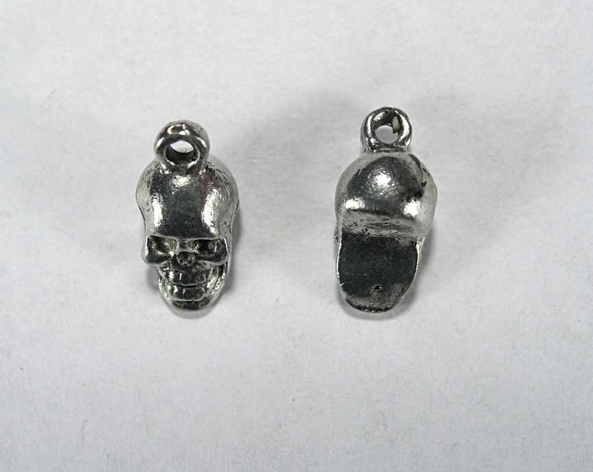 Подвеска металлическая "Череп", двусторонняя. Размер - 9х5 мм. Материал - сплав олова. Поставщик - США. Цена указана за 1 штуку.