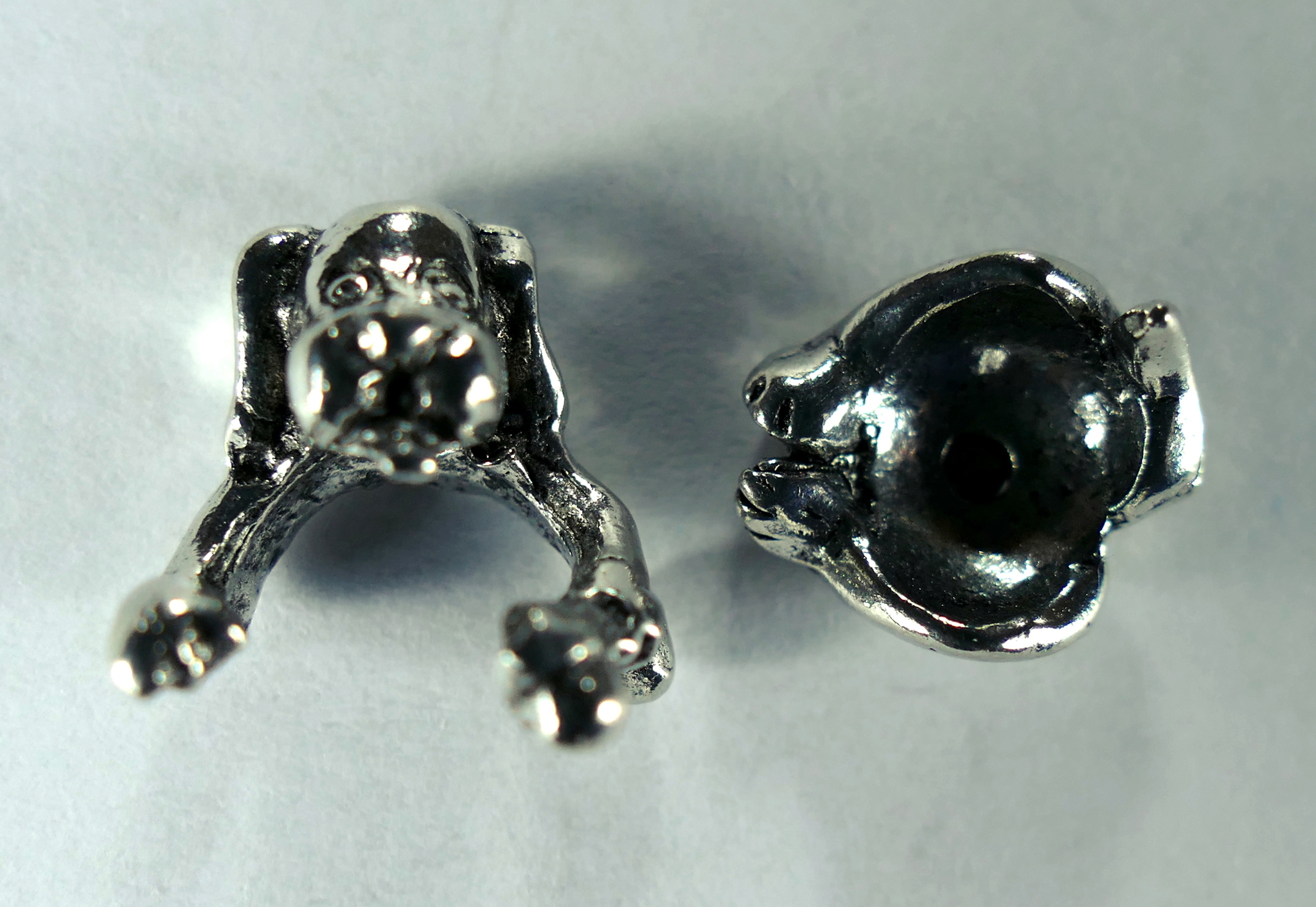 Шапочка для бусин "Собака", 14x12 мм, двойная, посеребренная, 1 шт.