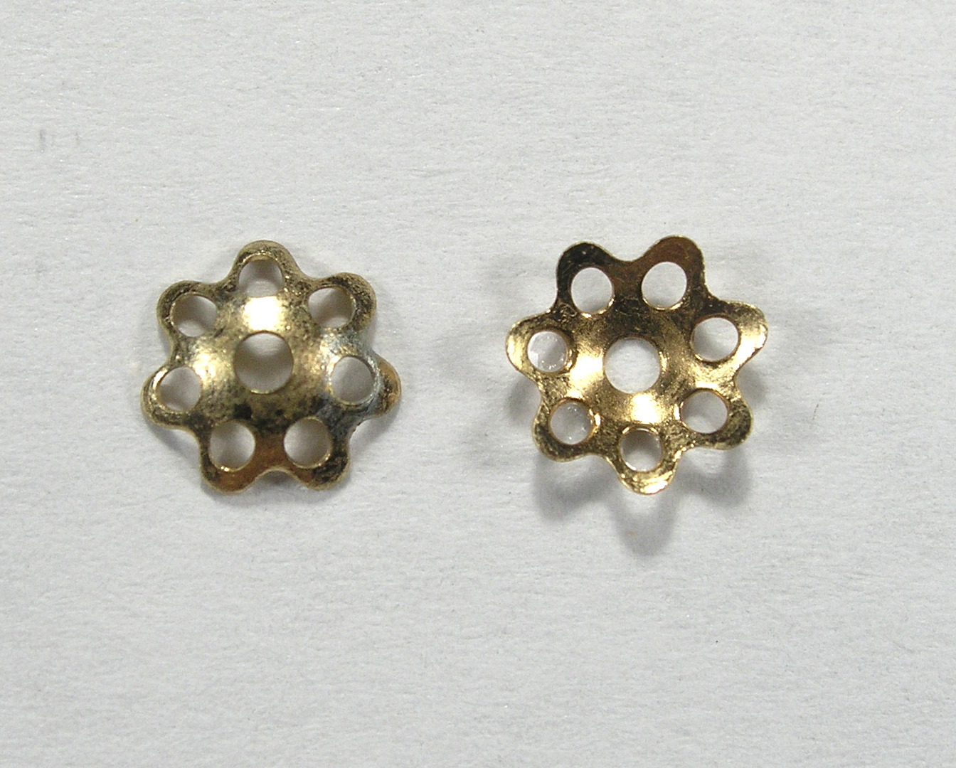 Шапочка для бусин. Размер - 6х1,5 мм (диаметр, высота). Материал - латунь с покрытием золотом 18 карат. Поставщик - США. Цена указана за две штуки.