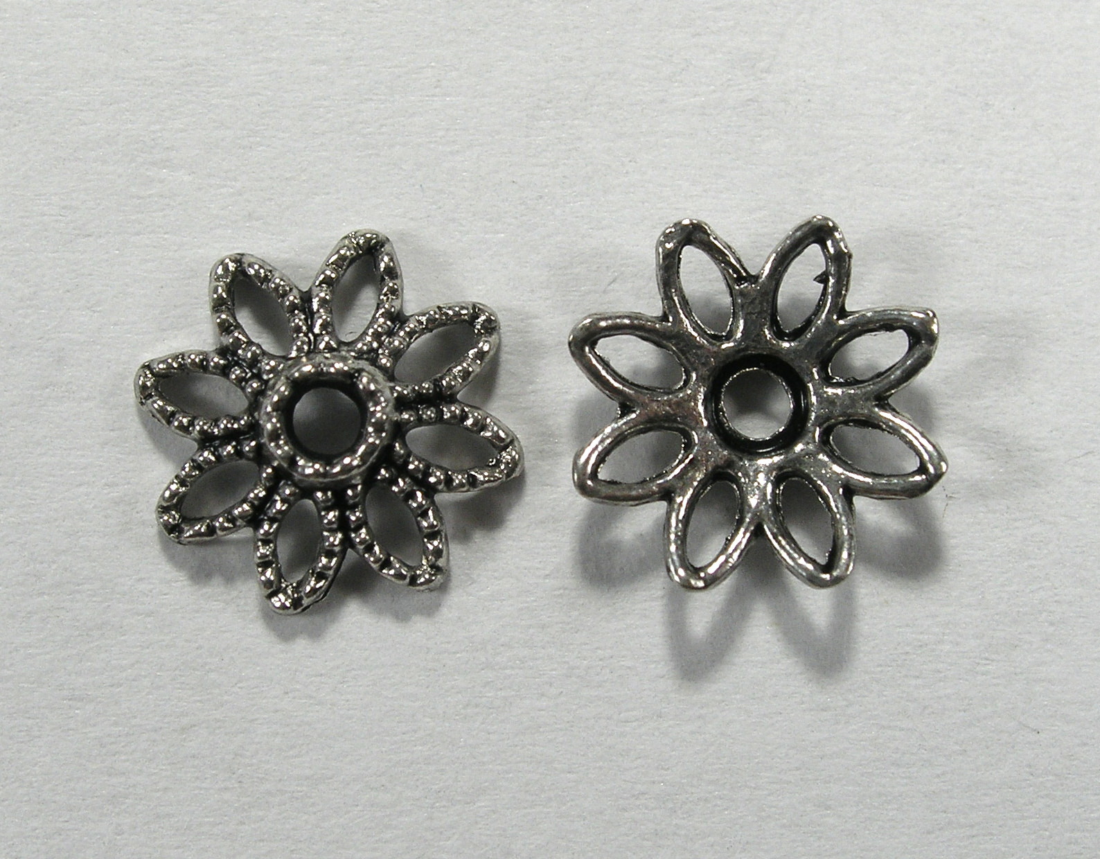 Шапочка для бусин "Цветок филигрань", 10x2,5 мм, посеребренная, 2 шт.