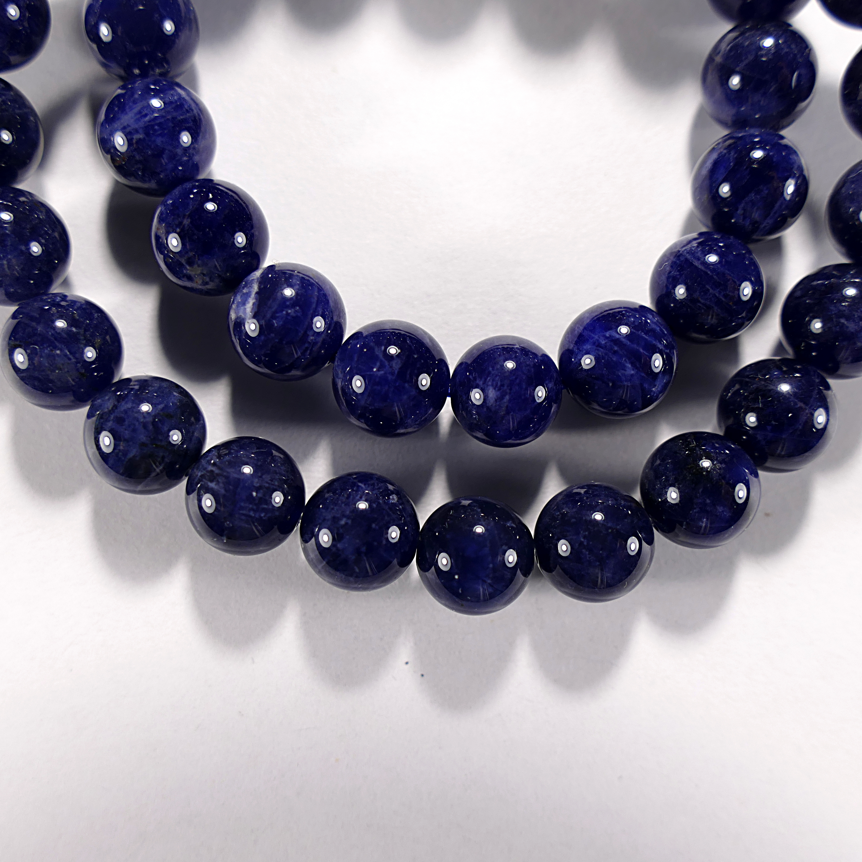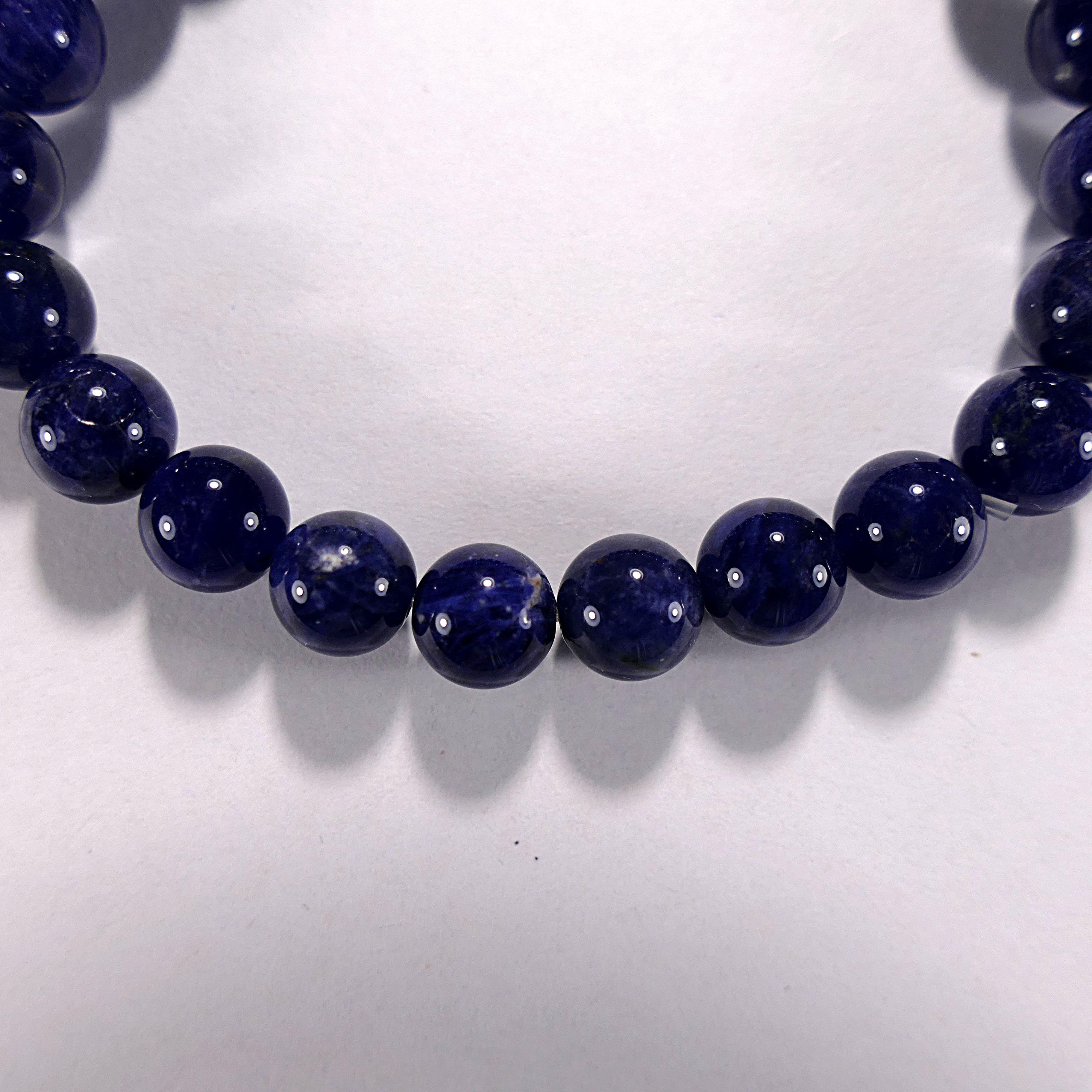 Бусина из натурального содалита. Огранка - шар гладкий. Размер 8 мм. Класс минерала - А. Цена указана за 1 бусину. Происхождение камня - Боливия.